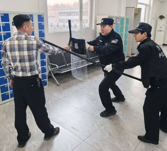 在實戰(zhàn)演練環(huán)節(jié),模擬了安檢區(qū)發(fā)現(xiàn)可疑物品、突發(fā)沖撞等情景。參訓(xùn)干警反應(yīng)迅速、配合密切,規(guī)范運(yùn)用警械裝備,有效實施了控制、帶離、警戒等處置程序,展現(xiàn)了良好的戰(zhàn)術(shù)素養(yǎng)和應(yīng)急反應(yīng)能力。