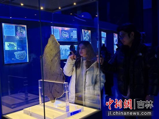 12月19日,參加由吉林省文化和旅游廳主辦的“Hello冰雪Go吉林”國(guó)際媒體采風(fēng)活動(dòng)的媒體記者、網(wǎng)絡(luò)博主走進(jìn)吉林市,在吉林市博物館(吉林市隕石博物館)近距離領(lǐng)略“天外來(lái)客”隕石的魅力,感受中國(guó)歷史文化名城的新活力。