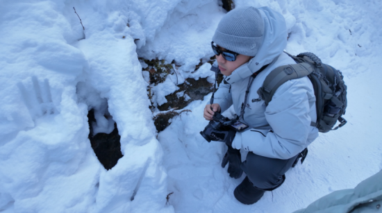 深入雪谷腹地,采風(fēng)團(tuán)一行涉入尚未冰封的溪水,手扶古木,沿溪而行。“這種體驗(yàn)太美好了,在滿是積雪的森林深處行進(jìn),感覺太奇妙了!泵绹(guó)網(wǎng)絡(luò)博主于中美驚嘆道。