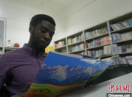 圖瓦在圖書館里查找書籍。 石洪宇 攝