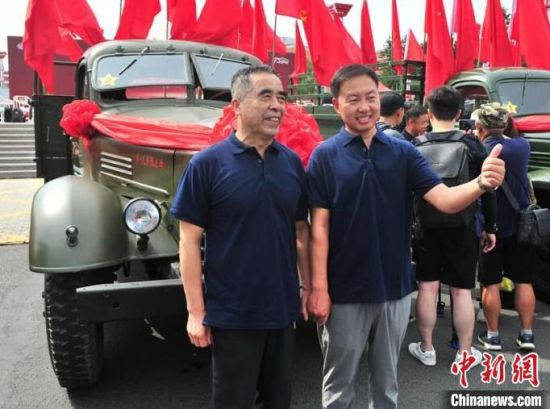 魏旭與解放第六、第七代卡車合影。高龍安 攝