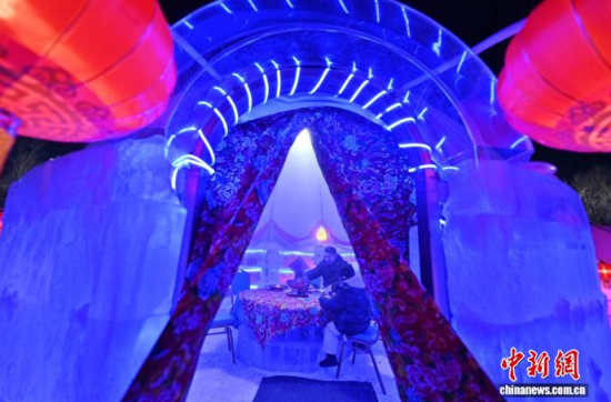 2月4日,在吉林長(zhǎng)春世界雕塑園內(nèi),一座晶瑩剔透的冰屋中熱氣繚繞,來自上海的游客圍坐在冰桌前,品嘗著沸騰的火鍋,親身體驗(yàn)“冰火兩重天”的奇妙感受。 張瑤 攝