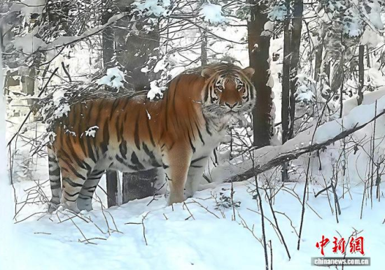 2024年12月3日,長白山保護區(qū)工作人員發(fā)現(xiàn)的野生東北虎,拍攝時與老虎距離不到10米。(資料圖)(吉林省林業(yè)和草原局供圖)