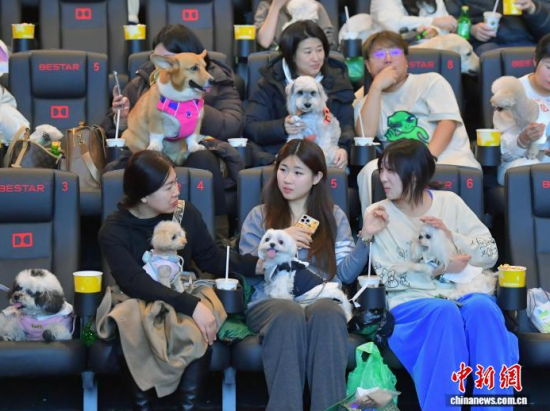 12月5日晚,吉林長春,兩只“汪星人”在觀影。近日,吉林長春一家影院創(chuàng)新推出“寵物陪伴觀影”特色專場,吸引不少市民帶著愛寵一同走進電影院,共享觀影樂趣。為提升“人寵共處”的體驗,影院專門對場內(nèi)光線與音量進行了適應性調(diào)整,并提前備好寵物坐墊、尿不濕等應急物品,力求為寵物和主人打造一個舒適、安心的觀影環(huán)境。中新社記者 張瑤 攝