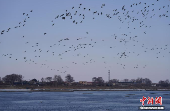 吉林蛟河迎萬余只過境大雁 鳥類“驛站”生機(jī)盎然