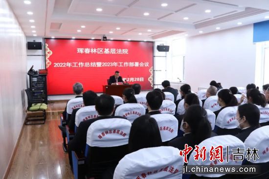 中新網(wǎng)吉林新聞3月1日電 (譚偉旗 劉思妤)2月28日,琿春林區(qū)基層法院召開2022工作總結(jié)暨2023年工作部署會議,全面總結(jié)和回顧2022年各項工作,并對今年各項工作進(jìn)行部署。該院黨組成員、副院長李忠臣主持會議,黨組書記、院長鄭國榮出席會議并講話,該院全體干警參加會議。