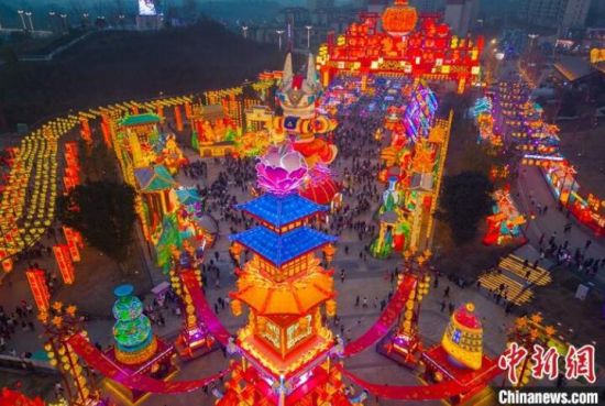 中新社四川自貢2月5日電 題:“南國燈城”元宵夜 彩燈萬盞慰相思