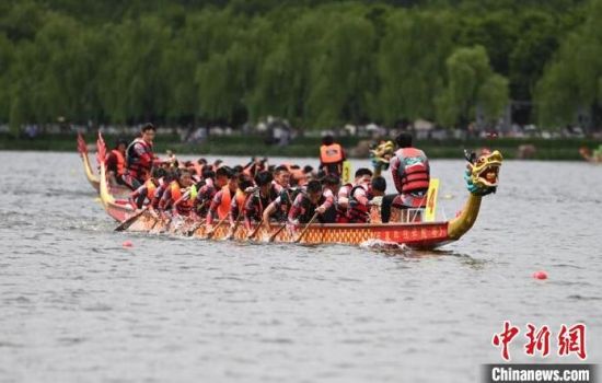 中新網(wǎng)長春6月22日電 (記者 郭佳)22日是中國傳統(tǒng)節(jié)日端午節(jié),吉林省第一屆全國龍舟邀請(qǐng)賽在長春伊通河舉辦,吸引來自吉林、安徽、廣東、河北等地的16支隊(duì)伍、約300人揮槳逐浪,奮勇爭(zhēng)先。