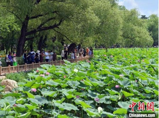 7月12日,在吉林長春南湖公園荷花池內(nèi),3萬余株荷花迎來觀賞期,放眼望去,“惟有綠荷紅菡萏,卷舒開合任天真”的景色盡收眼底,引賞花市民駐足觀賞。(完)