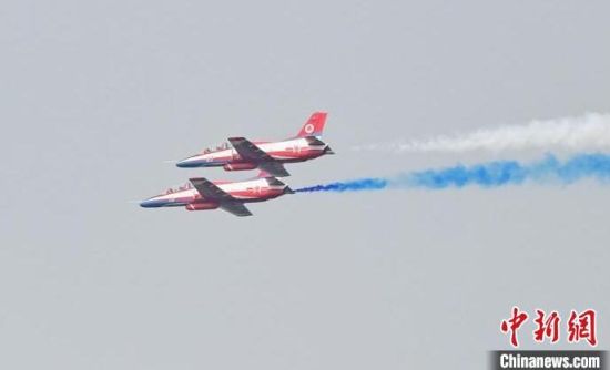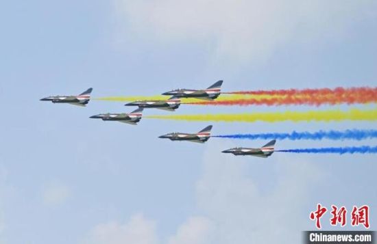 紅鷹飛行表演隊在進行飛行表演。張瑤 攝八一飛行表演隊在進行飛行表演。張瑤 攝紅鷹飛行表演隊在進行飛行表演。張瑤 攝殲-20。張瑤 攝運油-20、殲-20、殲-16同框向公眾展示。張瑤 攝