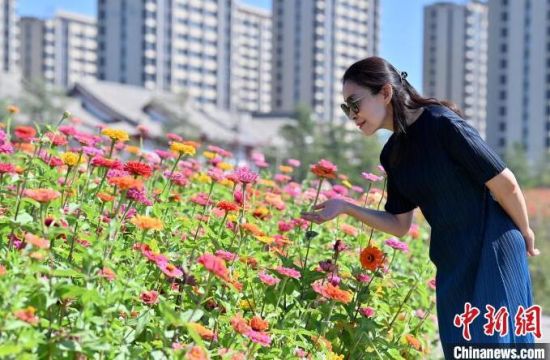 9月12日,在長春北湖花海,姹紫嫣紅的花朵在綠樹藍天的映襯下構(gòu)成了一幅美麗的秋色畫卷,吸引眾多游客前來觀賞。