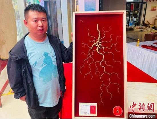 據(jù)了解,脫穎而出的“野山參王(干品)”有著百年參齡,主人是來自吉林省白山市的參商張雯溥。“這次帶來的野山參五形特別好,皮老紋深,參須柔韌性強(qiáng),有彈性,蘆、紋、體、皮色、須可以說都屬上乘!