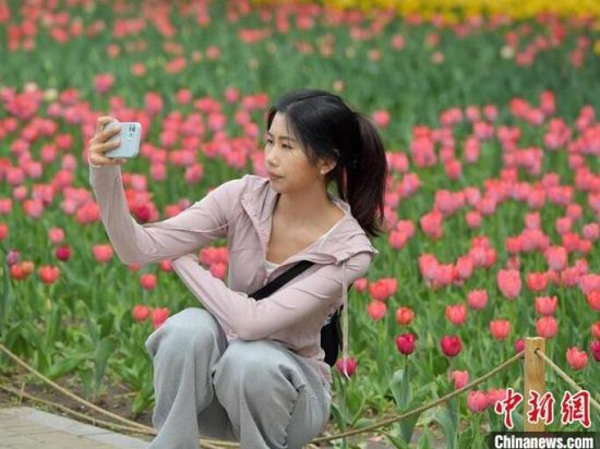 5月6日,吉林長春,民眾正在公園內(nèi)打卡拍照。初夏時節(jié),長春公園中的50萬余株郁金香迎來盛花期,吸引大量民眾前來賞花。(完)