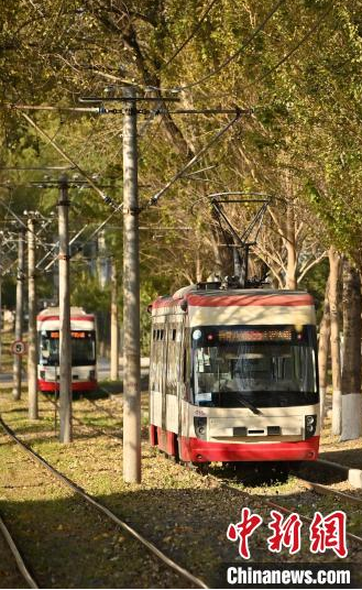 10月9日,吉林長(zhǎng)春,一輛有軌電車(chē)在泛黃的樹(shù)木中行駛,呈現(xiàn)出別有韻味的秋季景致,吸引游客打卡。中新社記者 張瑤 攝