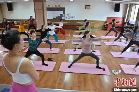 10月24日,在位于吉林長春的吉林省老年大學(xué),老年人在練習(xí)瑜伽。近來,越來越多老年人在運動中煥新生活,瑜伽也不再是年輕人的專屬。在老年人的眼中,瑜伽鍛煉了體態(tài)和精神面貌,讓他們看起來“越來越年輕”。中新社記者 張瑤 攝