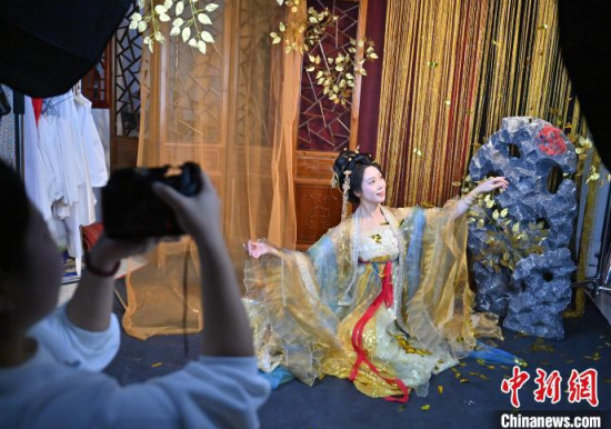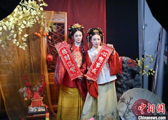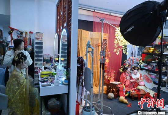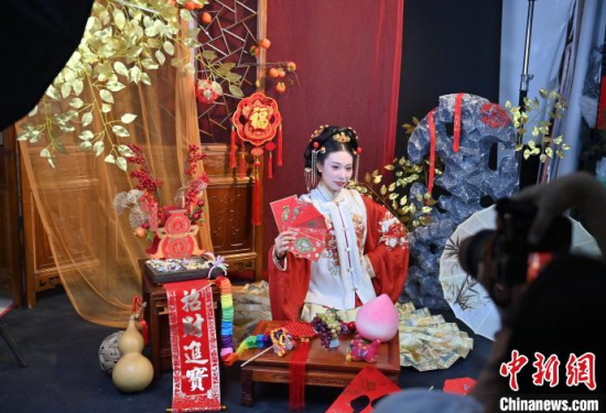 1月6日,吉林長春,市民在拍攝漢服寫真。店家介紹,農(nóng)歷蛇年春節(jié)將至,漢服寫真成了顧客新需求,店家特推出百梅迎春、金蛇賀歲、招財進(jìn)寶等主題,深受市民喜愛。中新社記者 張瑤 攝