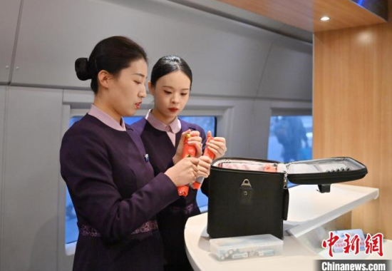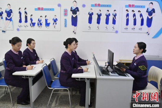 1月7日,吉林長春,“動姐”在進行安全知識培訓。春運臨近,為提升服務品質,沈陽局集團公司長春客運段動車一隊的乘務員們利用業(yè)余時間開展基礎禮儀、職業(yè)形象、服務技巧等內(nèi)容的培訓。中新社記者 張瑤 攝