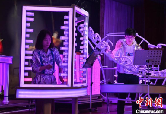 2月22日,在長春中國光學(xué)科學(xué)技術(shù)館,小朋友在體驗(yàn)光學(xué)樂器。當(dāng)天,由該館工作人員組成的OMI樂隊(duì)為觀眾獻(xiàn)上了一場精彩演出,他們利用由傳感器和其他光學(xué)元件制成的光學(xué)樂器,結(jié)合專業(yè)的電子音源,通過用手或鼓棒遮擋光束來產(chǎn)生電信號(hào),觸發(fā)音源,發(fā)出聲音和變換顏色。這種演奏方式仿佛是通過敲擊空氣來演繹美妙的樂曲。中新社記者 張瑤 攝