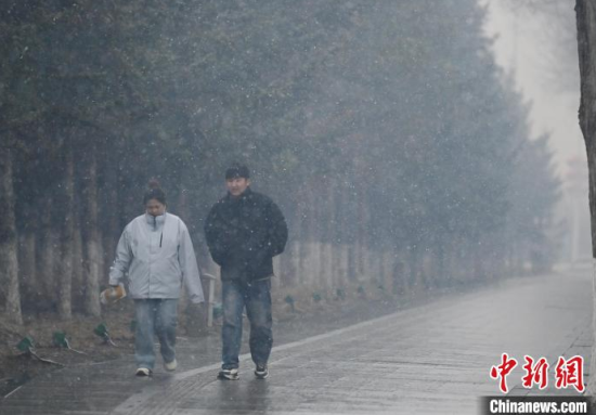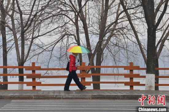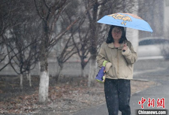 3月25日,吉林長春,市民冒雪出行。當天,吉林省迎來雨雪天氣,多地進入“降溫模式”,局地最低氣溫降至零下。中新社記者 張瑤 攝