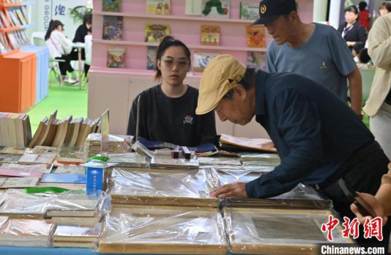 5月16日,吉林長春,市民在第二屆東北圖書交易博覽會上選購舊書。本屆東北書博會首次設立“舊書新知”(東北專場),匯聚了近千種古籍舊書、名家墨跡手稿、特裝書等,吸引不少市民關注選購。中新社記者 張瑤 攝