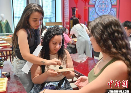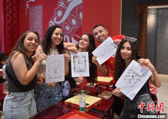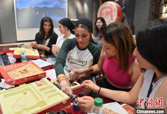 6月24日,吉林長(zhǎng)春,埃及青年體驗(yàn)活字印刷術(shù)。當(dāng)天,來(lái)自美國(guó)、埃及、印度尼西亞等國(guó)家的青年在長(zhǎng)春體驗(yàn)?zāi)嗨、活字印刷術(shù),參觀一汽紅旗文化展館,近距離感受中國(guó)文化的魅力。中新社記者 張瑤 攝