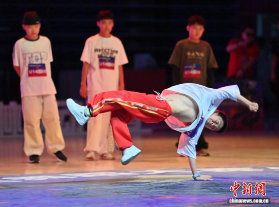 9月6日,吉林長春,舞者在U14組比賽中。當(dāng)天,2025中國·吉林省體育舞蹈公開賽暨街舞國際邀請賽在長春開幕。來自中、韓等國家的千余名選手同臺競技,賽事涵蓋霹靂舞、拉丁舞等多個(gè)項(xiàng)目。中新社記者 張瑤 攝