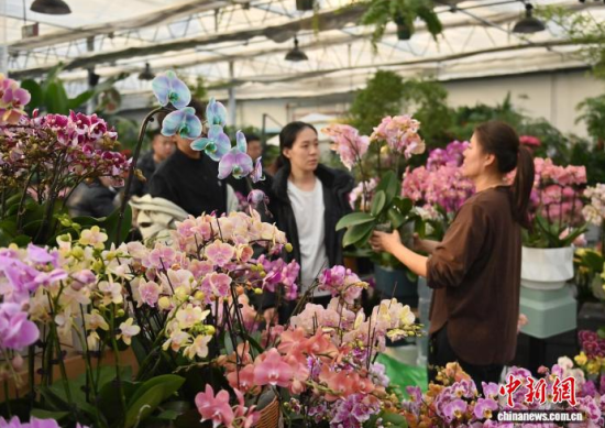 2月9日,吉林長春,商家在修剪鮮花。春節(jié)臨近,長春市各大花卉市場(chǎng)迎來年宵花銷售熱潮。蝴蝶蘭、大花蕙蘭、杜鵑花等象征喜慶的鮮花琳瑯滿目,吸引眾多市民前來選購;ㄉ虃兠β祩湄洝⒋虬,現(xiàn)場(chǎng)一片繁忙景象。中新社記者 張瑤 攝