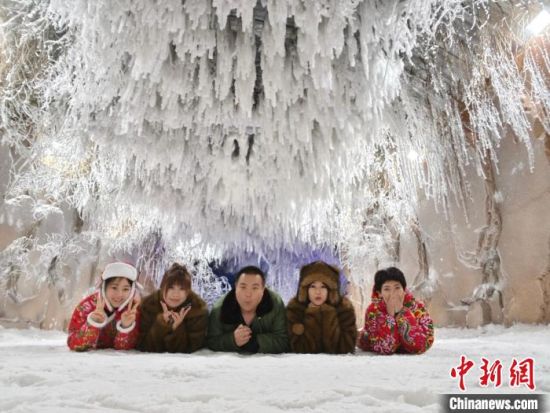 游客在“雪洞”拍照留念。 于淼 攝