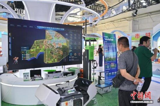 參觀者在參觀長春國家農(nóng)高區(qū)未來農(nóng)場設(shè)計藍(lán)圖!埇 攝