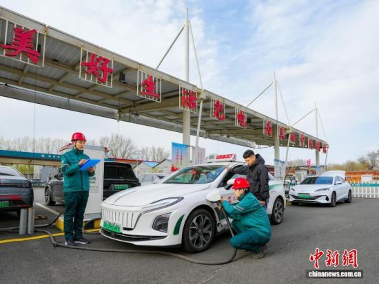 電力員工服務新能源汽車車主充電。(國網(wǎng)吉林省電力有限公司供圖)